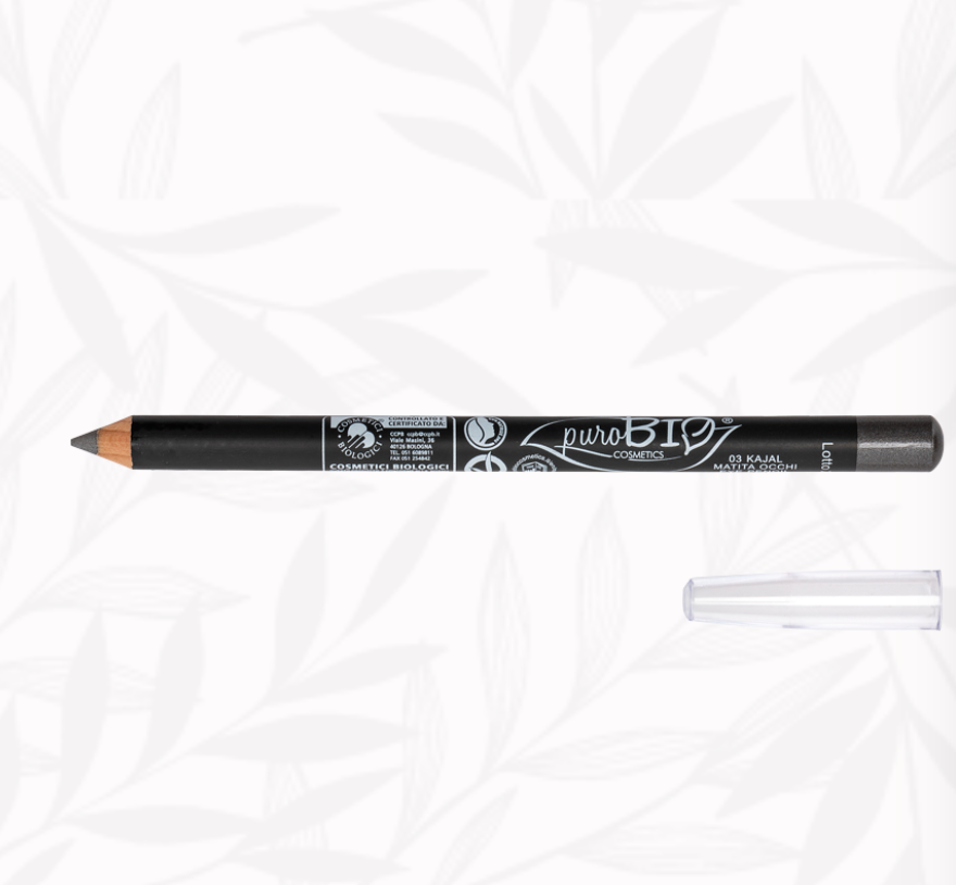 PuroBio Cosmetics ha creado un lápiz suave y fácil de difuminar para un trazo simple y preciso. Contiene pigmentos, aceites vegetales y ceras. Enriquecido con Vitamina E y esta disponible en 3 tonos: GRIS, AZUL, Y VERDE.